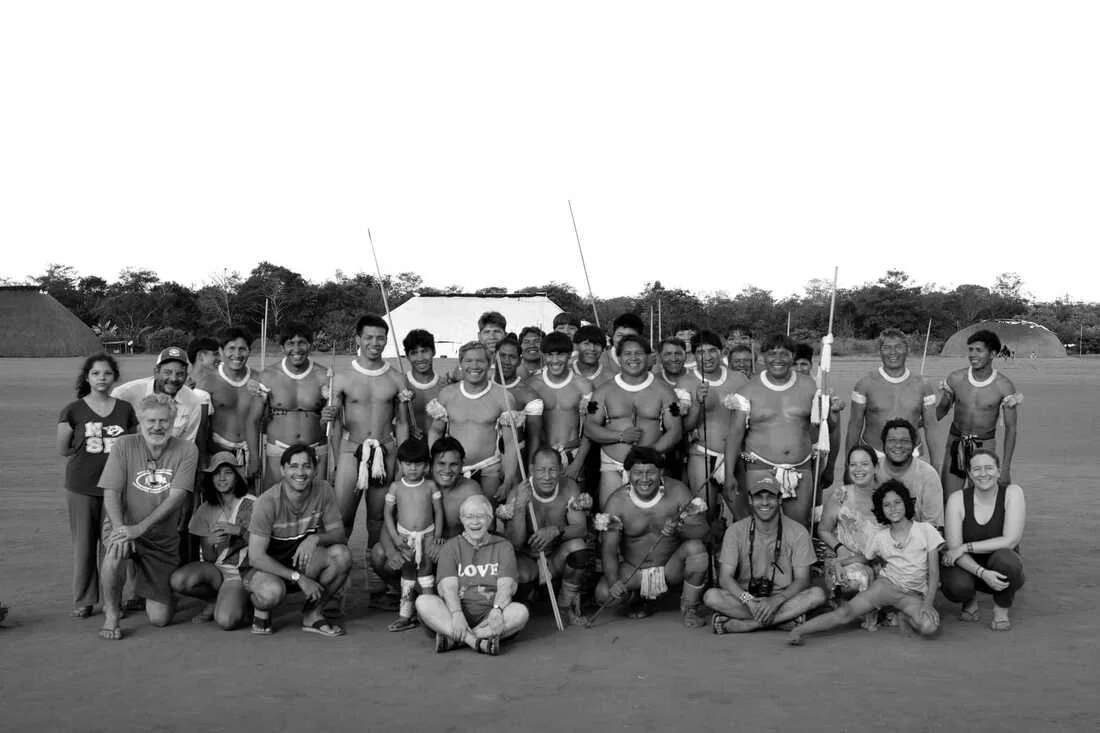Members of the Kuikuro Ethnoarchaeological Project together with the Kuikuro during the Javari Festival, at Ipatse Village, Upper Xingu, Southern Amazon. The team, led by the Goeldi Museum, and supported by the Pennywise Foundation and William T Hillman Foundation, were there to conduct a workshop for collaborative cultural heritage mapping using drone-based LiDAR and other geospatial tools. June 2023